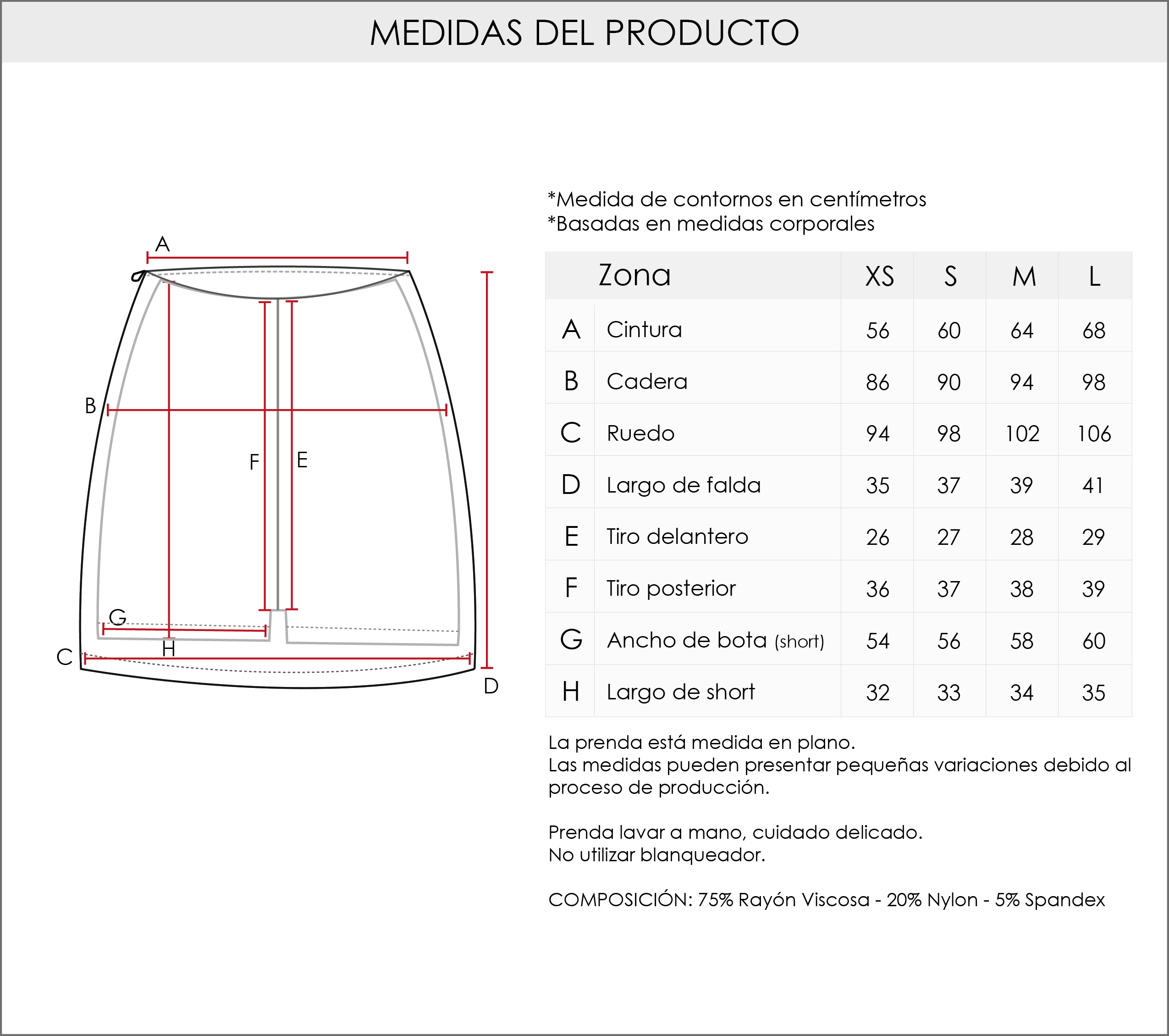 Composición: 75% Rayón Viscosa - 20% Nylon - 5% Spandex
