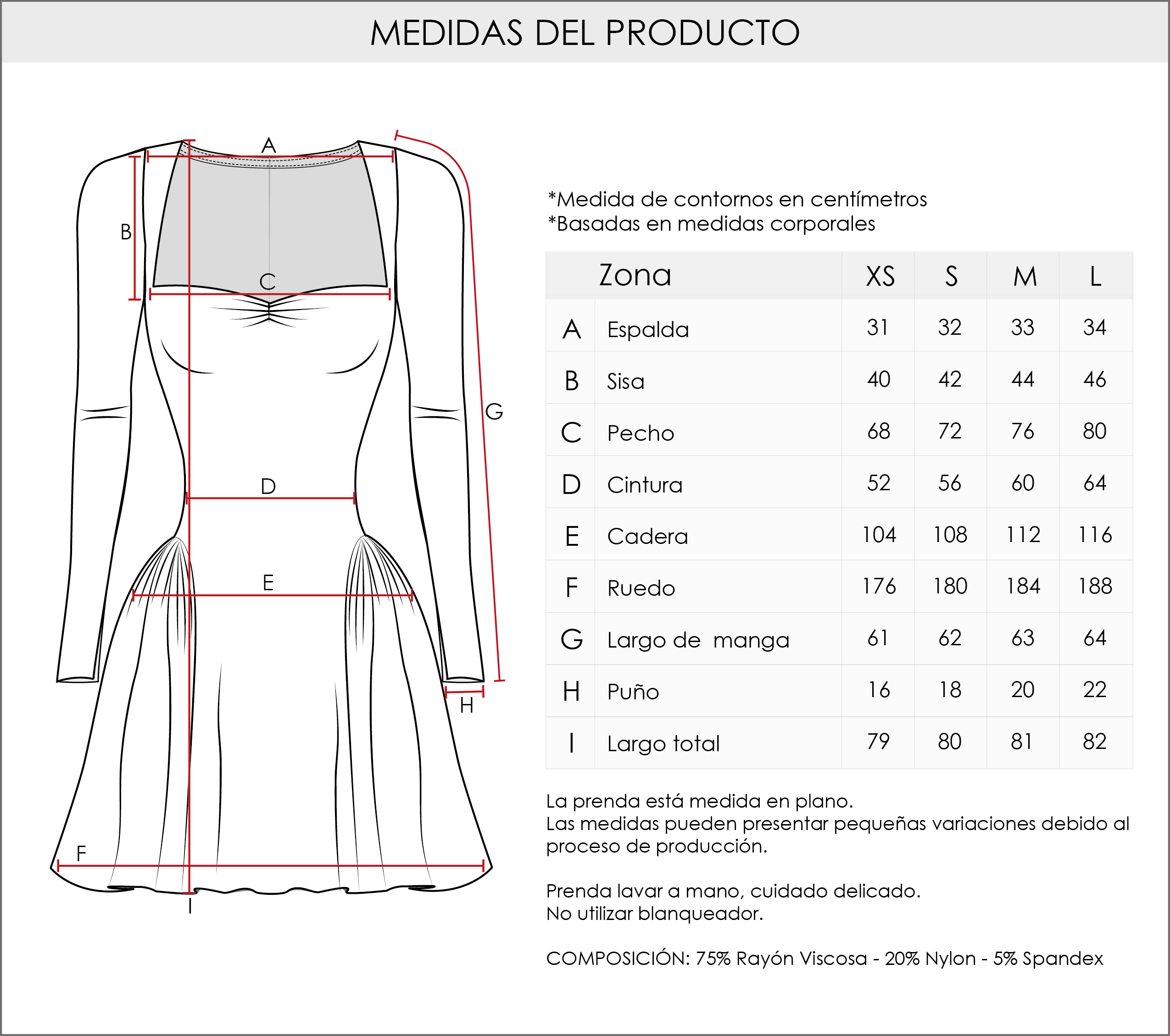 Composición: 75% Rayón, 20% Nylon, 5% Spandex