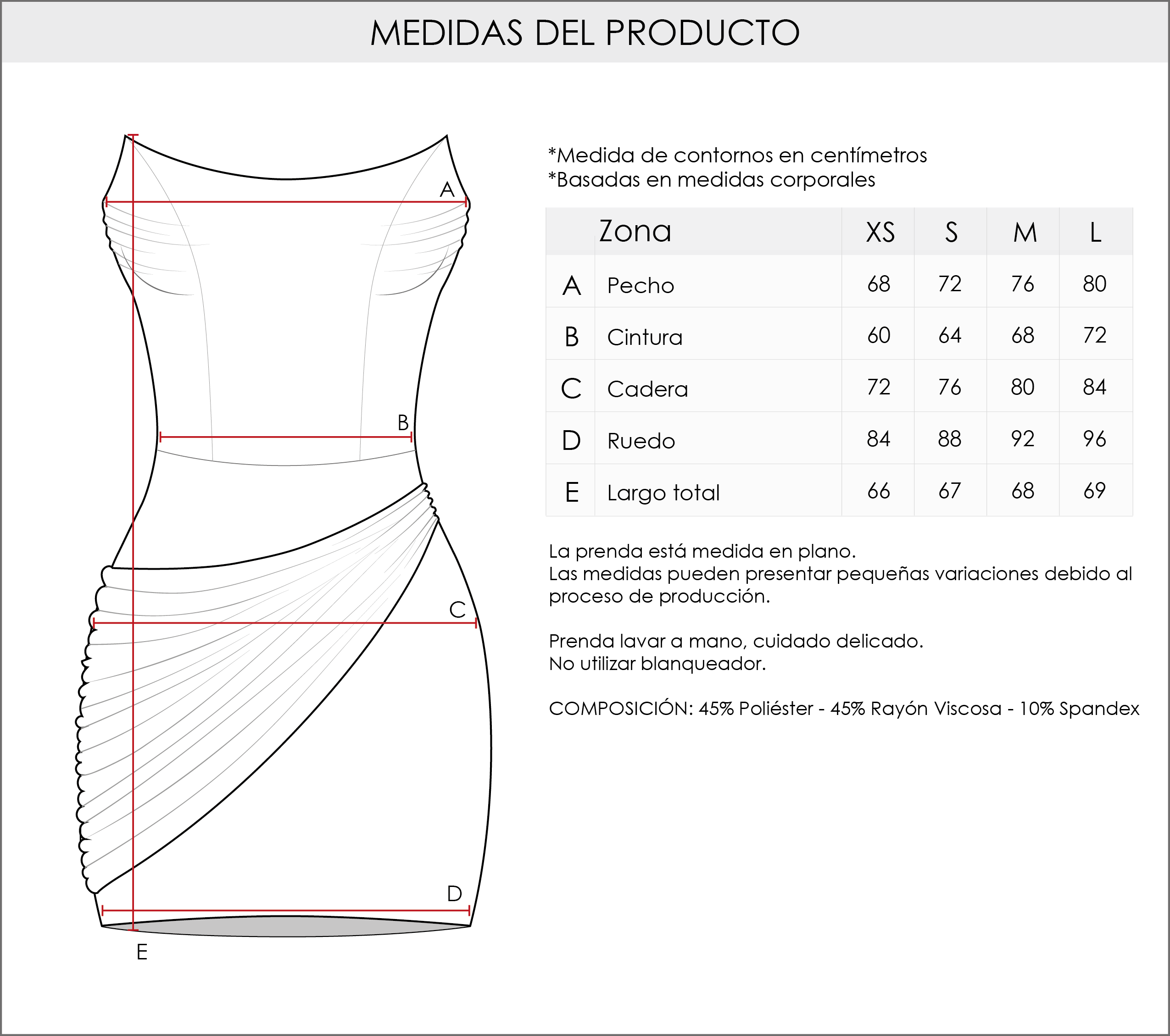 Composición: 45% Poliéster, 45% Rayón, 10% Expandex