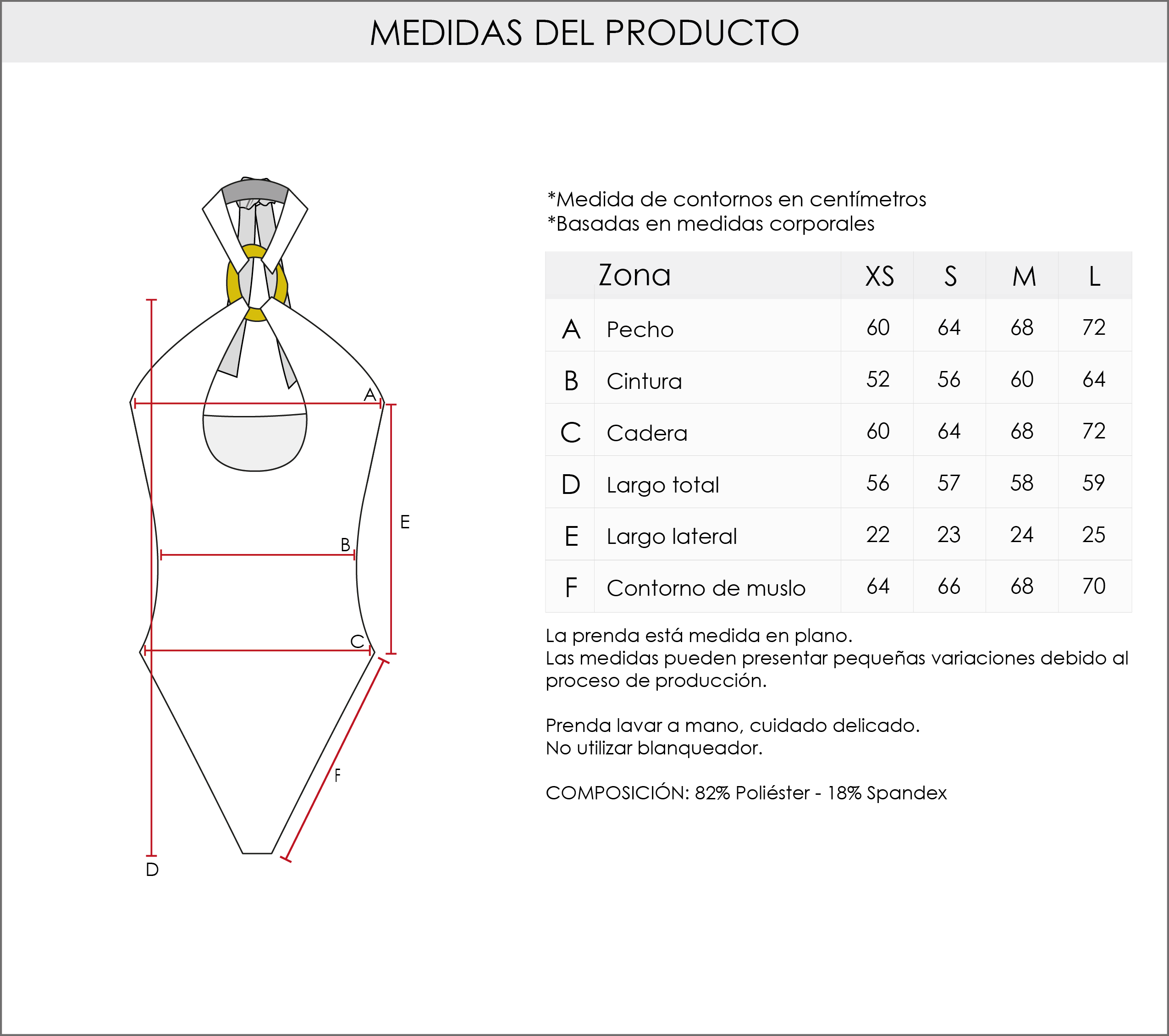 Body en tejido stretch con escote halter y aplique decorativo en el centro.