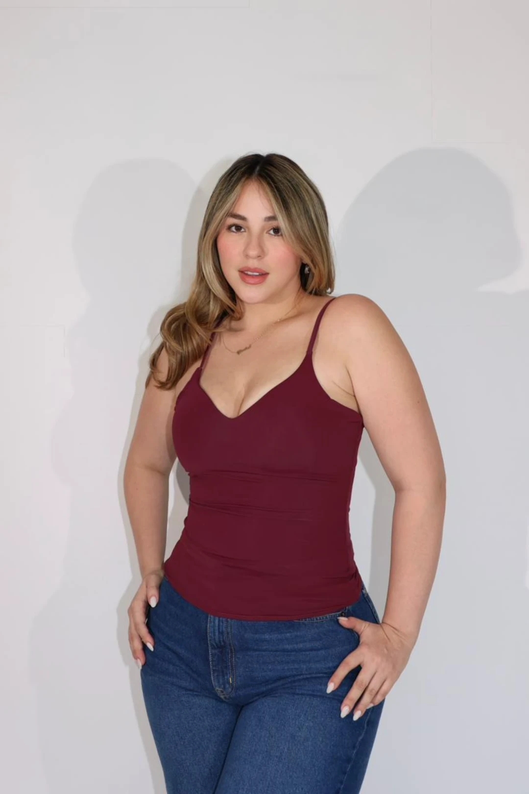 BLUSA EN TEJIDO STRETCH CON ESCOTE CORAZON Y TIRANTES FINOS CON REGULADOR. DISEÑO CEÑIDO CON EFECTO COMPRESION. SI ESTIRA.